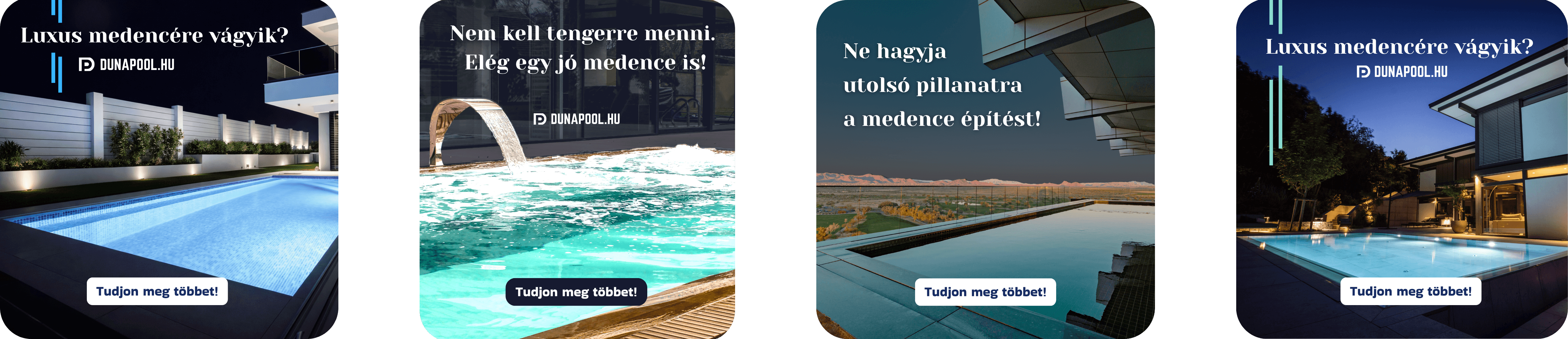 A DunaPool prémium medencéi nem csak szép látványt nyújtanak. Minden projekt mögött gondosan tervezett folyamat, szakmai precizitás és megbízhatóság áll. Meta hirdetéseink segítségével olyan minőségi érdeklődőket generáltunk, akik valóban készek befektetni álmaik medencéjébe, miközben a digitális jelenlét erős, prémium márkaimázst épít Budapest elit kerületeiben.